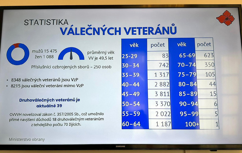 Zejména pro nové členy výboru byl podle předsedy výboru Josefa Fleka zařazen bod věnovaný činnosti odboru pro válečné veterány a válečné hroby Ministerstva obrany. „Zařadil jsem jej právě proto, aby byli noví poslanci seznámeni s důležitostí toho, co tento odbor dělá,“ uvedl Flek. Tuto činnost představil ředitel odboru pro válečné veterány a válečné hroby MO plukovník Robert Speychal, který poslance provedl prezentací zaměřenou na systém péče o veterány. Speychal připomněl, že odbor je gestorem několika zásadních zákonů, včetně legislativy k válečným veteránům, válečným hrobům a pietním místům či třetímu odboji.